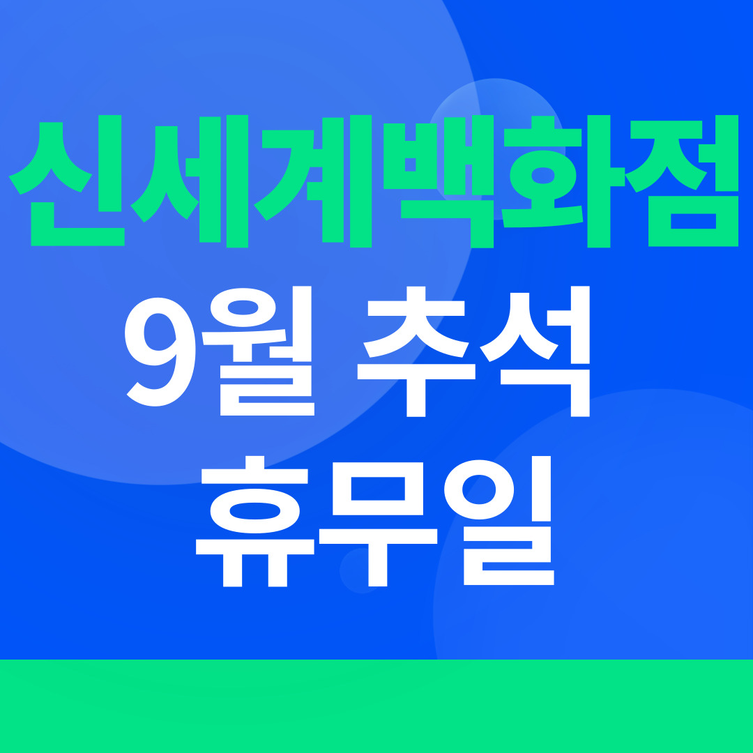 9월 추석 연휴에 신세계백화점 방문하실 계획이라면 추석 휴점일 미리 확인하셔야겠죠? 신세계백화점 휴무일 지점별로 정리해서 알려드리겠습니다. 아래 내용 확인하시면 헛걸음하시지 않을 거예요.