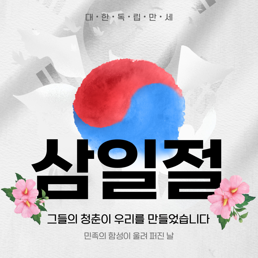삼일절은 우리 민족이 하나 되어 독립을 외친 뜻깊은 날입니다. 오늘날 우리가 누리는 자유와 독립의 소중함을 기억하며, 삼일절의 의미를 되새기는 하루가 되길 바랍니다.