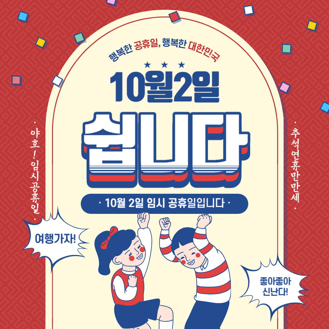 10월 2일 추석 임시공휴일 지정되었습니다.