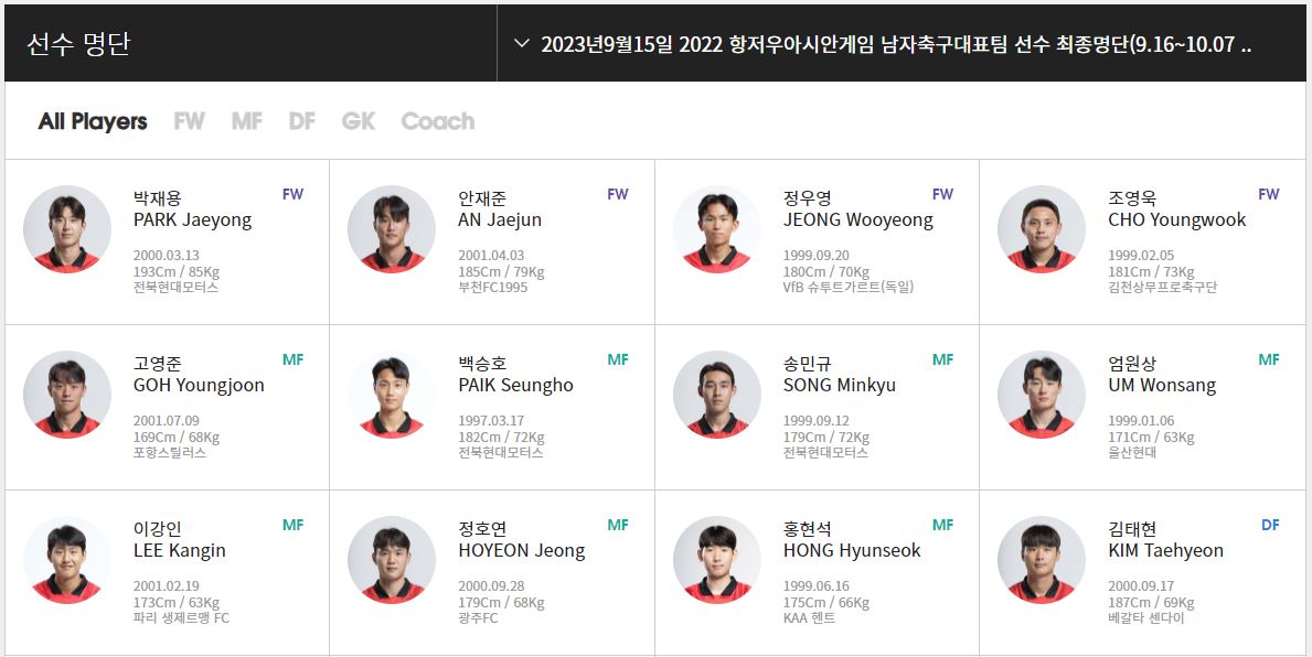 박재용(전북현대), 안재준(부천FC1995), 정우영(VfB슈투트가르트), 조영욱(김천상무)