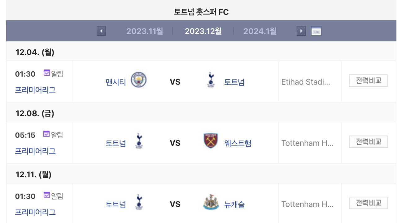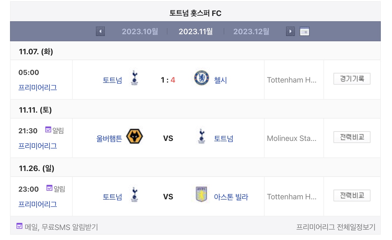 토트넘의 주장 손흥민 23-24 프리미어리그 12라운드 경기가 오늘밤 열립니다. 지난 11라운드 첼시와의 경기에서 로메로, 우도기의 퇴장 그리고 공격축구의 핵심인 메디슨의 발목 인대 부상, 반더밴의 햄스트링 부상까지... 한 경기에서 이렇게 많은 일들이 일어날 수 있을까? 싶을 정도로 믿기 어려운 악재의 연속이었습니다. 1군 선수들의 부상이 심각한 토트넘이 지금 이 난관을 어떻게 풀어나갈지 걱정도 되고 기대도 됩니다. 오늘은 앞으로의 토트넘 경기 일정 정리해드리겠습니다.