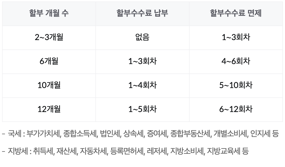 국세, 지방세 등 세금 납부 시 할부 적용되는 카드 한 번에 정리해서 알려드리겠습니다. 2025년 1월 내야 하는 근로소득세, 지방세, 부가세 등 국세 납부 시 아래 내용 참고하셔서 잘 활용하시면 좋겠습니다. 각 카드사별 버튼 통해서 자세한 내용 확인해 주세요.