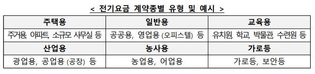 - 일반용 / 산업용 / 농사용 / 교육용 / 주택용 중 비주거용 전기요금을 부담하는 사업자