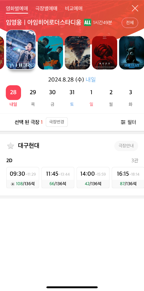 임영웅 영화 가격