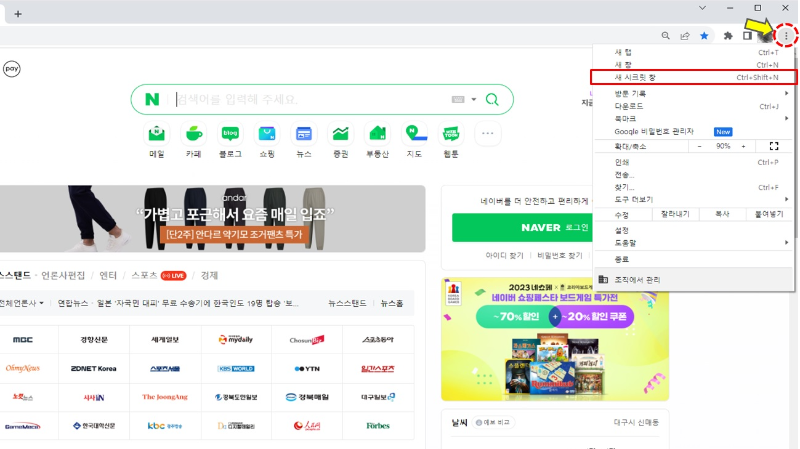 제가 사용하는 구글 크롬은 우측 상단에서 시크릿모드로 전환하실 수 있습니다.