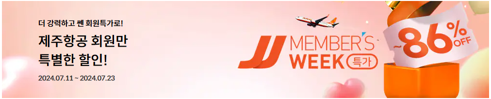 이번 JJ멤버스위크에서는 국내선 6개 노선, 국제선 38개 노선이 특가 할인 대상입니다. 노선별 가격은 아래 버튼 통해서 바로 확인 가능합니다.