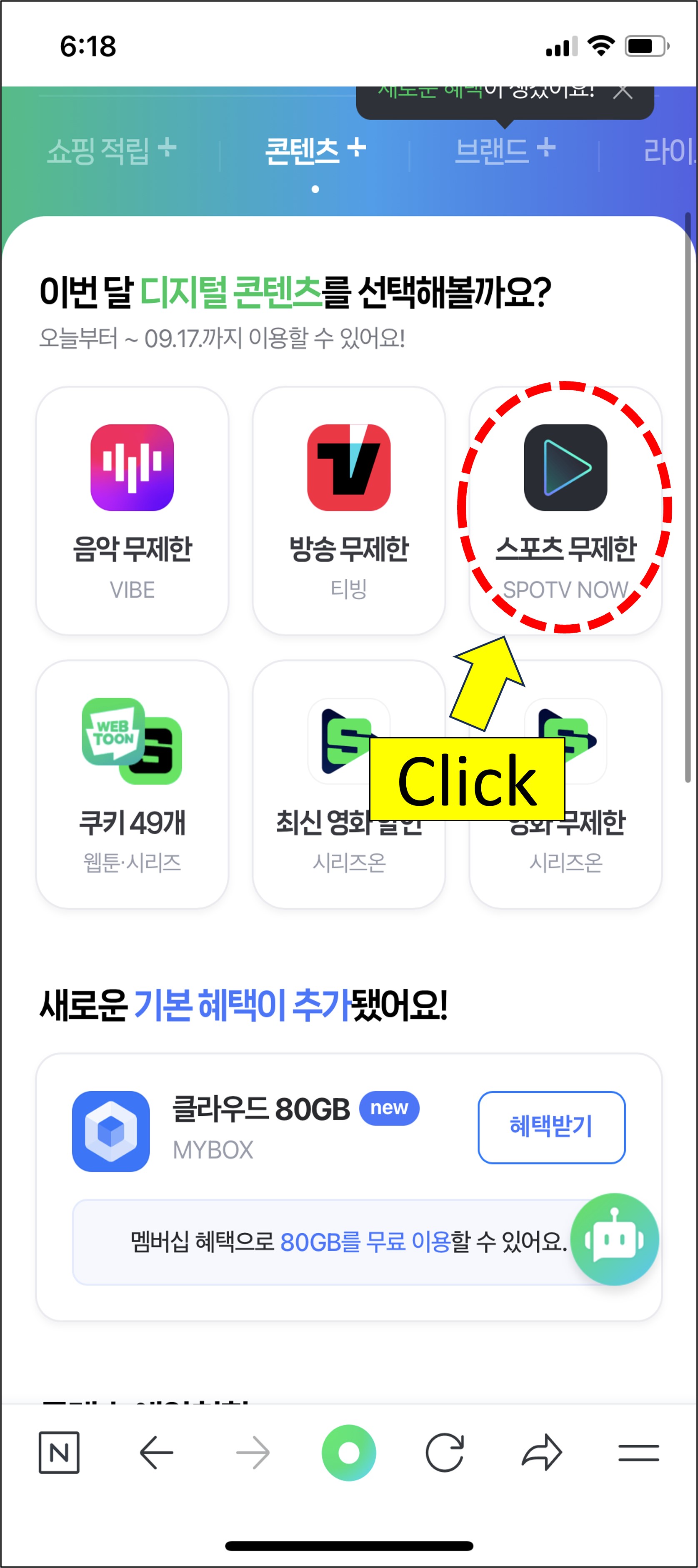 3. 스포츠 무제한 스포티비나우 선택