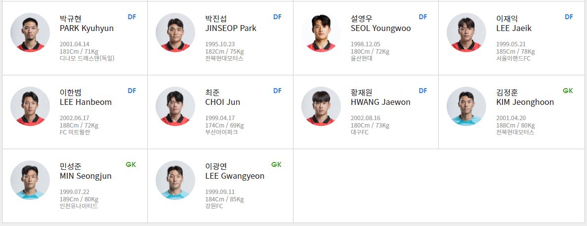 고영준(포항스틸러스), 백승호(전북현대), 송민규(전북현대), 엄원상(울산현대)