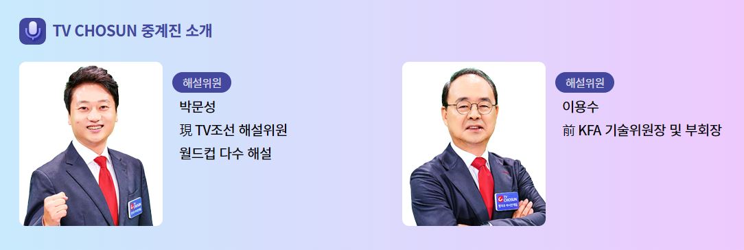 - TV조선 아시안게임 축구 중계: 박문성 , 이용수