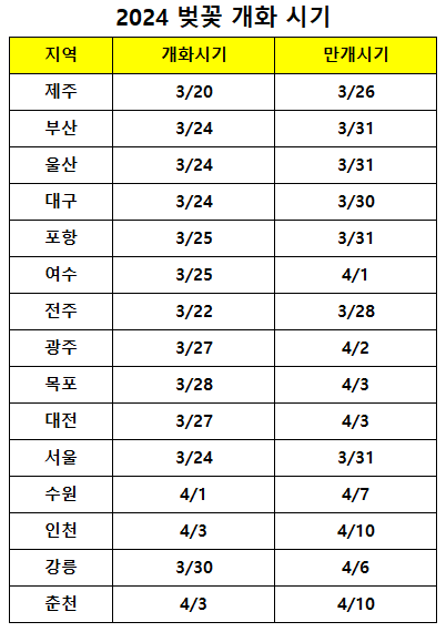 1. 벚꽃 개화시기