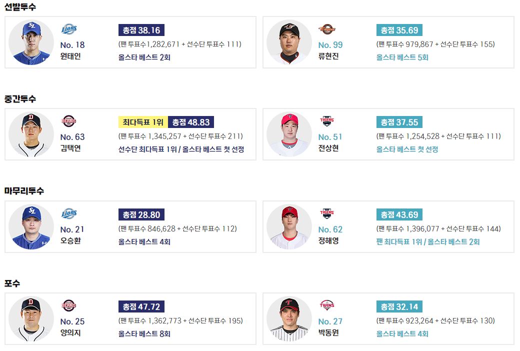 선수 명단은 팬투표와 선수단 투표로 선정되었으며 드림올스타와 나눔올스타로 나눠서 경기를 진행합니다. 팀별 선수명단은 아래 리스트에서 확인해 주세요.