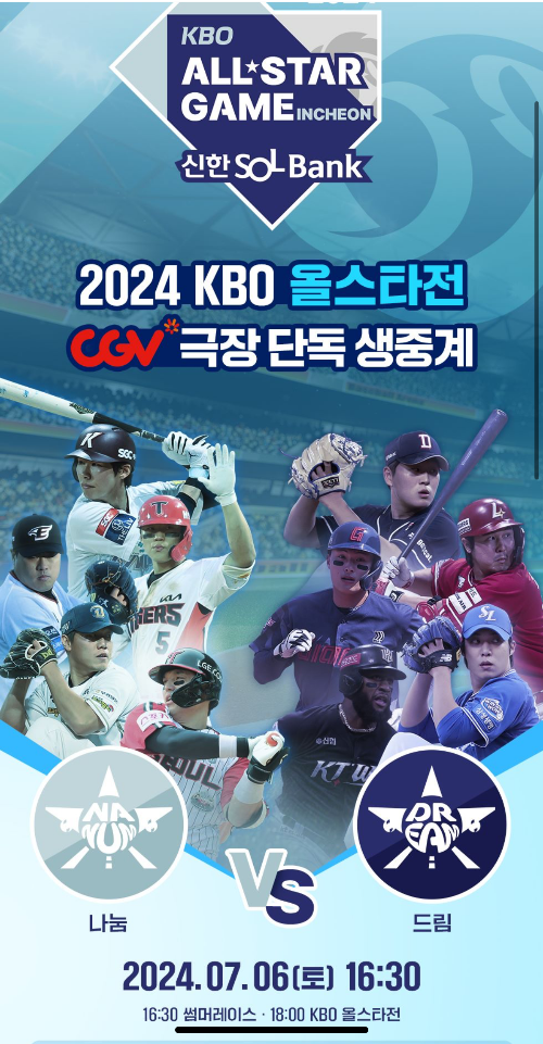 올스타전 경기를 CGV 극장에서 생중계로 만나볼 수 있습니다.