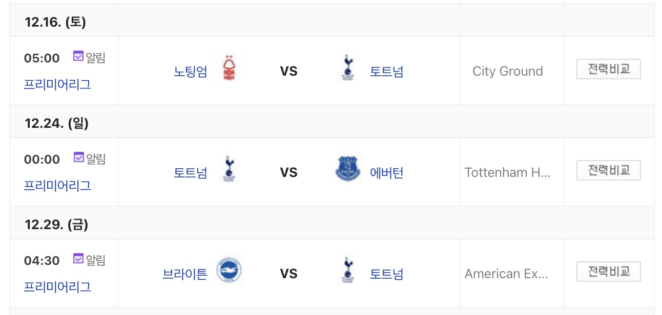 토트넘 12월 경기 일정