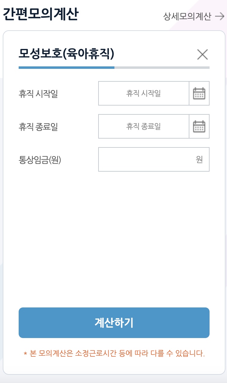 아래 이미지 클릭하시면 육아휴직금 간편 모의계산 해보실 수 있습니다.