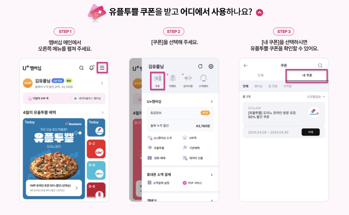 유플투쁠 쿠폰 확인 방법