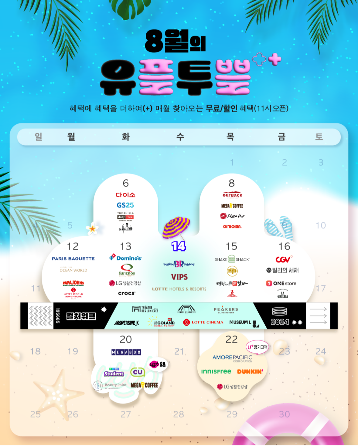 엘지유플러스 사용자들을 위한 다양한 혜택이 있다는 사실 알고 계신가요? 혜택에 혜택을 한번 더 플러스한 유플투쁠 이벤트로 다양한 할인쿠폰 받아볼 수 있습니다. 이번달에도 베스킨라빈스 쿼터 12,000원 할인 쿠폰 혜택도 포함되어 있습니다. 아래 버튼 통해서 날짜별 할인쿠폰 바로 확인하세요.